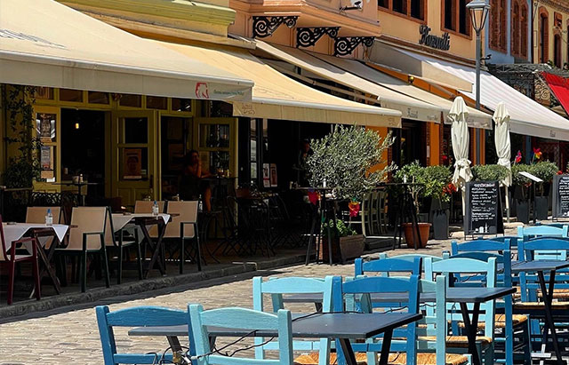 Valaoritou, formerly a thriving commercial area primarily known for its fabric stores and manufactories, has undergone a remarkable metamorphosis into a dynamic and trendy hangout in the city and has transformed into a vibrant hangout with repurposed shops now housing diverse cafes, restaurants, and bars. The energetic atmosphere, offering a range of music genres, makes bar hopping a must-do activity, while the surrounding architecture captures the historical essence of old Thessaloniki.